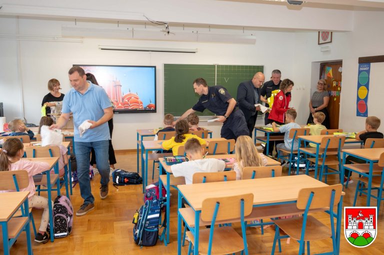 Gradonačelnik sa zamjenicima i predstavnicima PP Daruvar, Hrvatskog autokluba i Crvenog križa u posjeti prvašićima